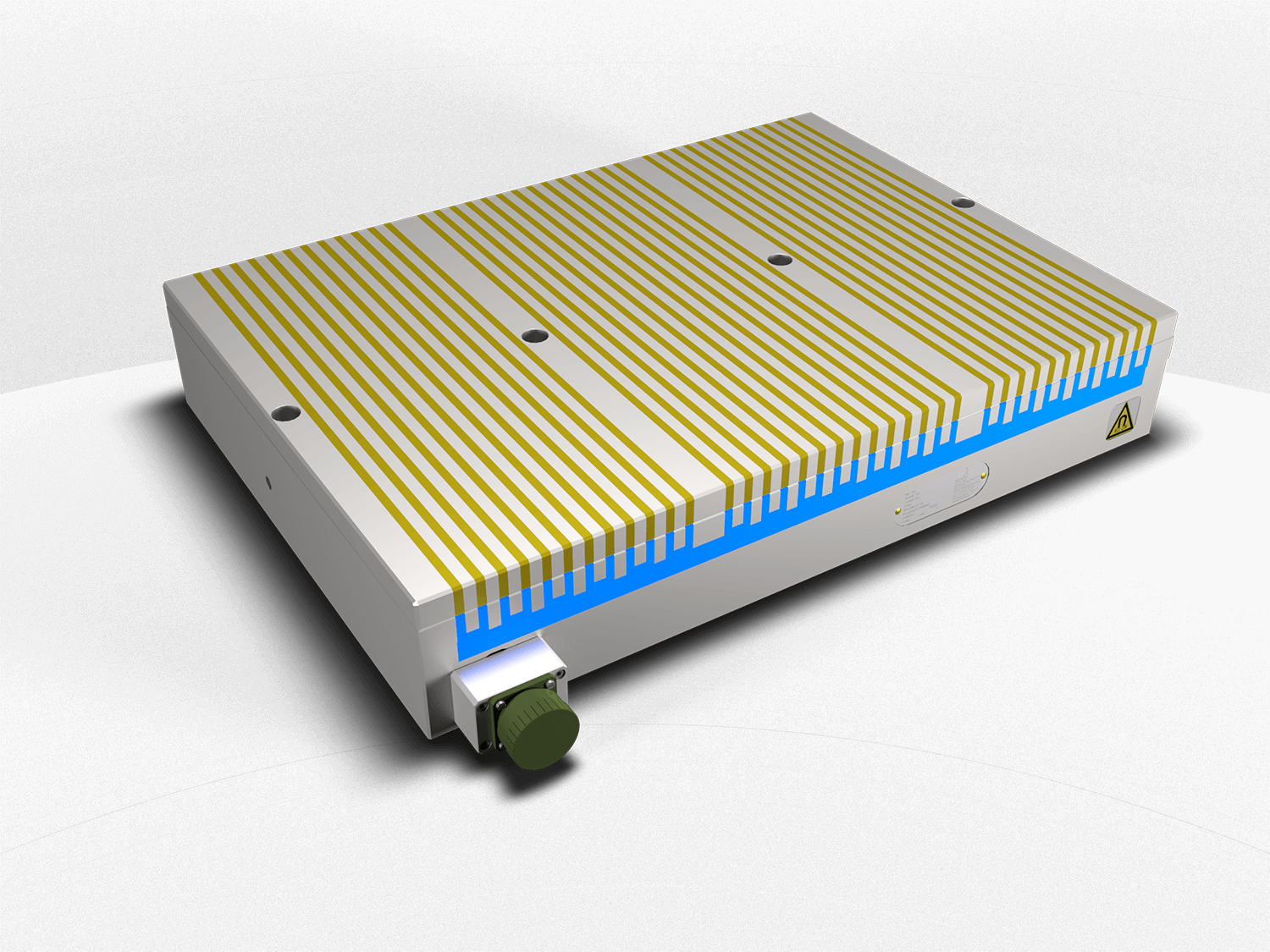 It is the only real solution on the market for milling small and thin parts, where other electro-permanent solutions show their limitations. The very fine pitch allows optimal flux control on low thicknesses, thus ensuring the best possible clamping force and the elimination of problems related to chip evacuation. The all-metal clamping surface provides stability, precision and durability; the top/upper plate is also replaceable, allowing easy repairs in case of accidental damage or special needs.