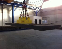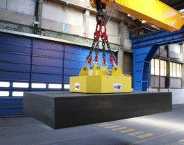 SEP modules have been designed to handle sheet metals, slabs and forged blocks with high air gaps. Thanks to their well-structured design, they are suitable for high stresses and therefore reliable over time. By means of the provided remote control, a single operator is able to carry out all types of operations (clamping, lifting, shifting, release).