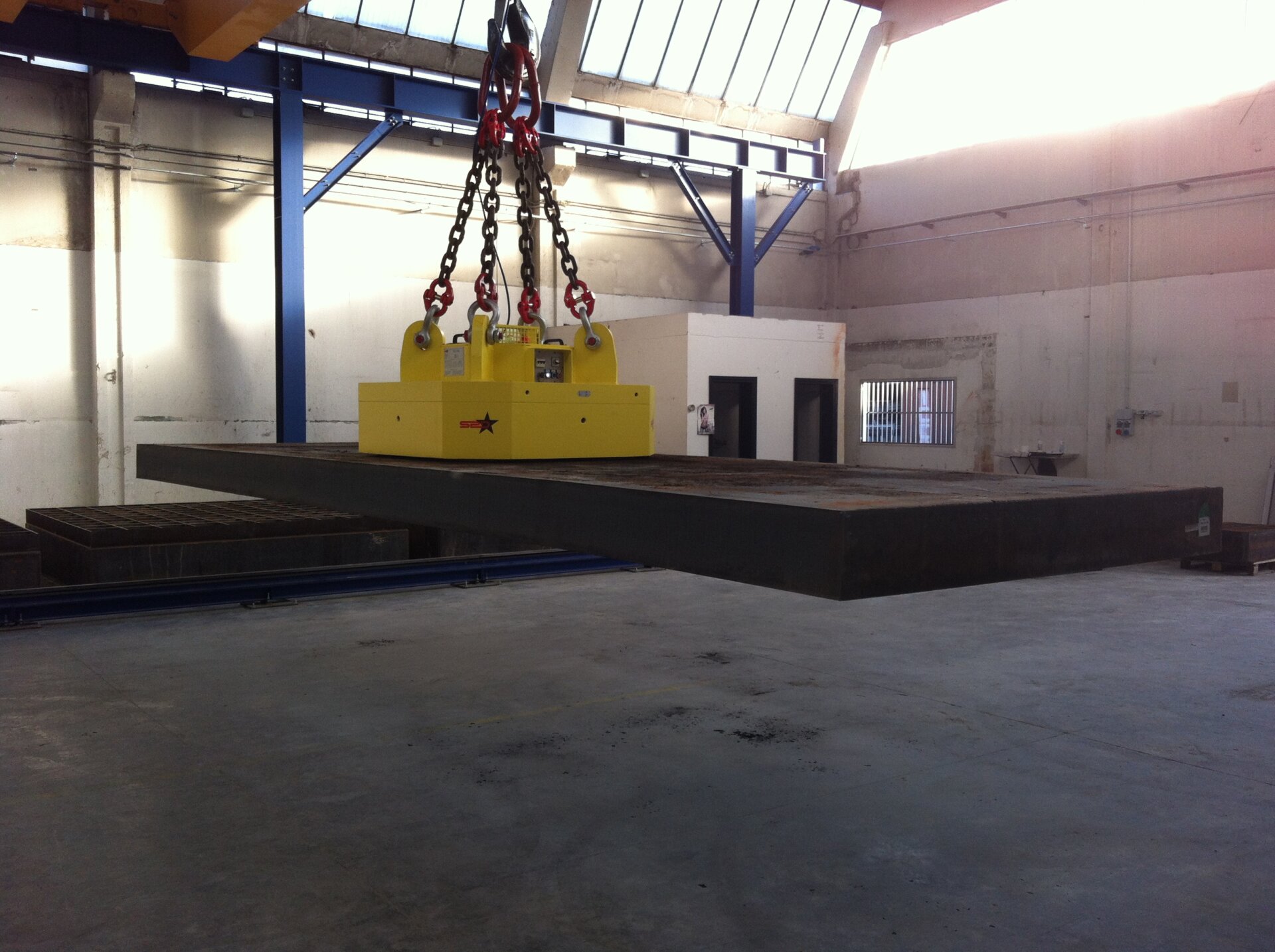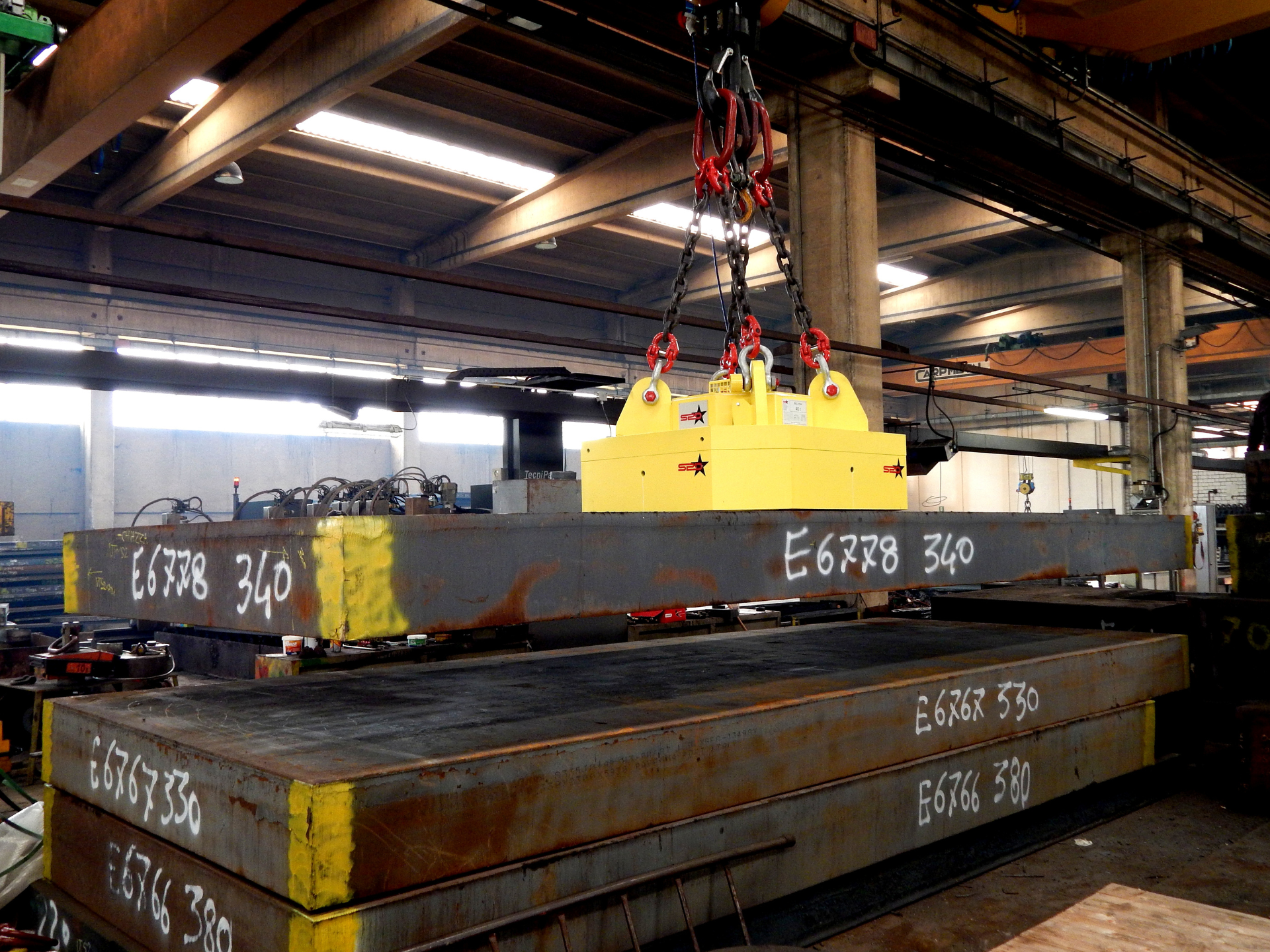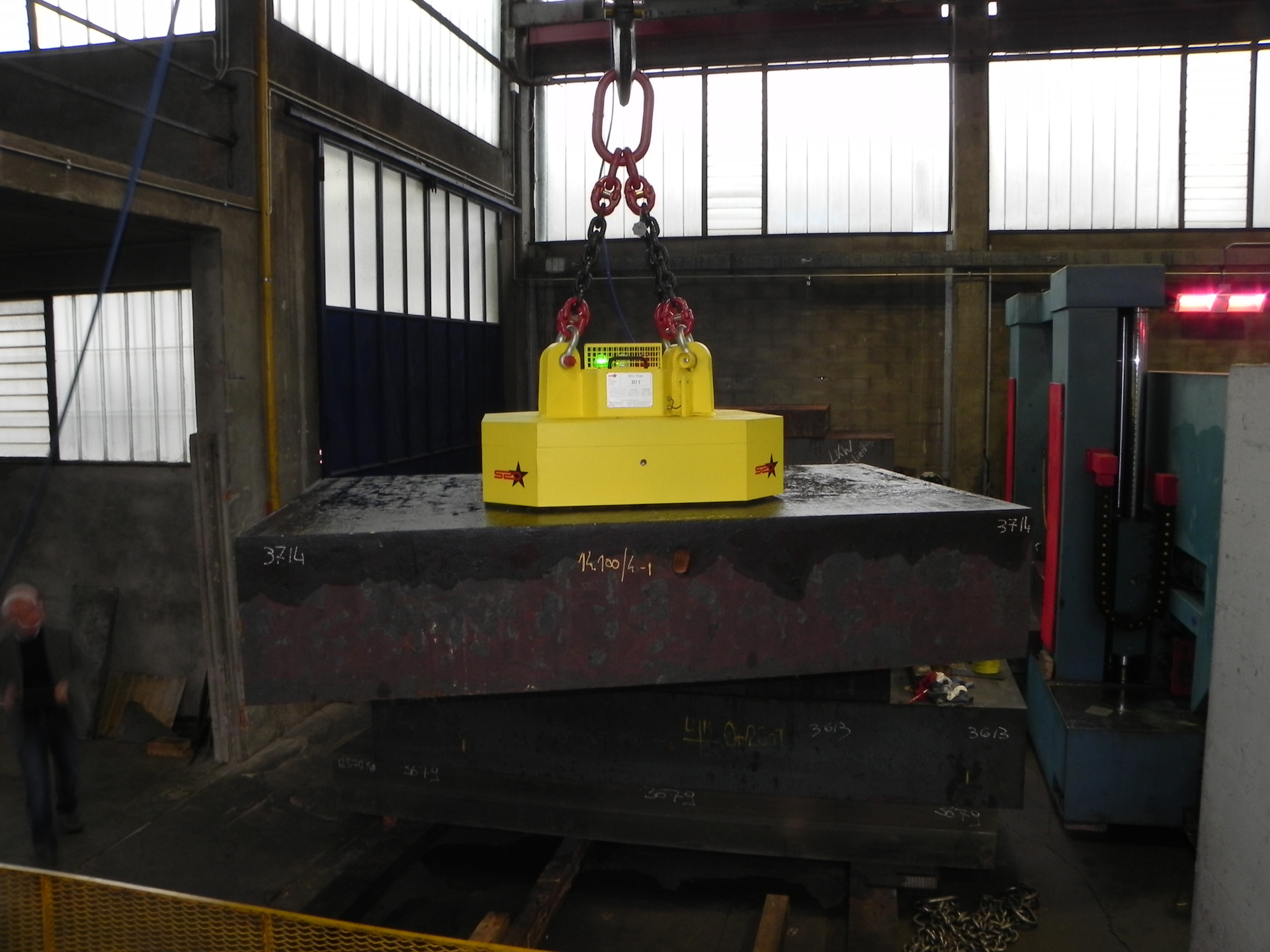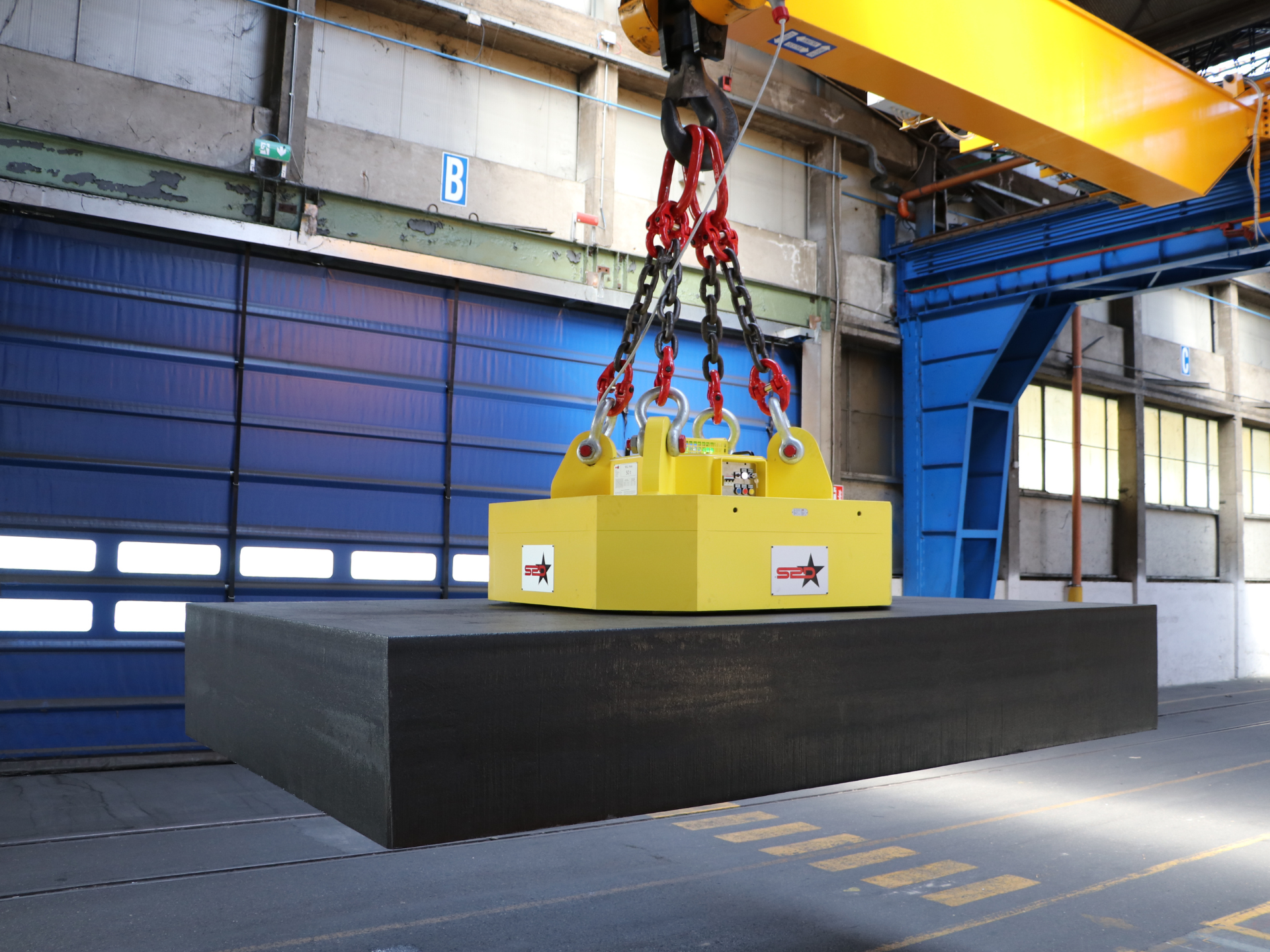 SEP modules have been designed to handle sheet metals, slabs and forged blocks with high air gaps. Thanks to their well-structured design, they are suitable for high stresses and therefore reliable over time. By means of the provided remote control, a single operator is able to carry out all types of operations (clamping, lifting, shifting, release).