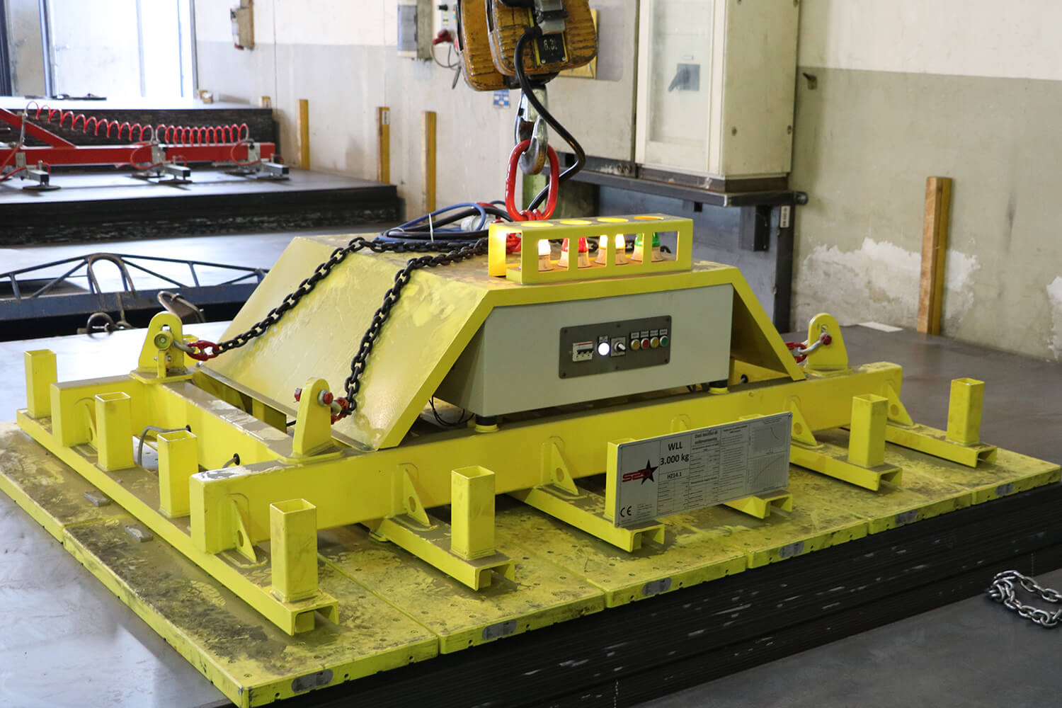 The rigid electro-permanent beams of the TREFIX-T series have been designed to load and unload sheet metals of specific dimensions onto cutting machines (laser, oxycutting, plasma). Once the sheet metal has been cut, the beam is able to unload it from the machine along with the chips with a single clamping operation, making the machine immediately available for the next sheet metal. The load is lifted from above without deformation or damage, and remains clamped indefinitely with a constant force, limiting the energy consumption to the magnetic activation or deactivationcycles. They do not require the installation of buffer batteries, feature an “anti-accidental deactivation” system, and offer as well the possibility of selecting the modules to be magnetized according to the size of the load. Thanks to the provided remote control, a single operator is able to carry out all the operations while remaining at a safe distance from the load.