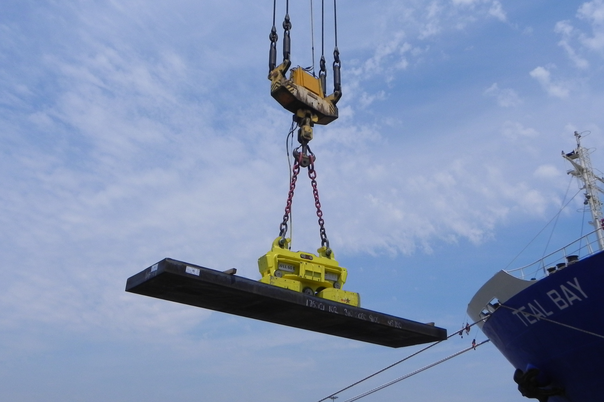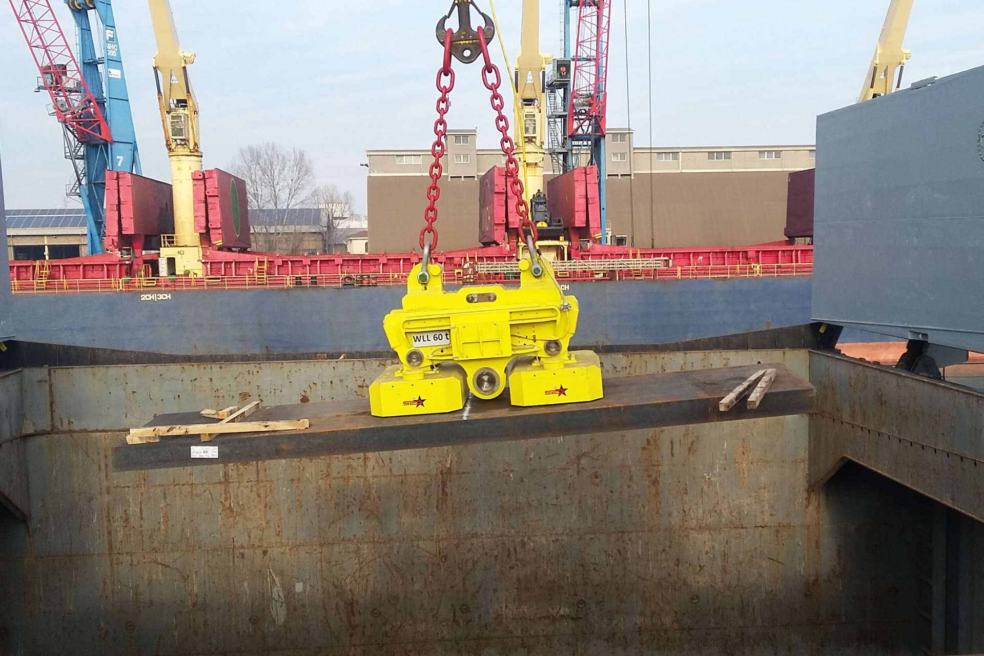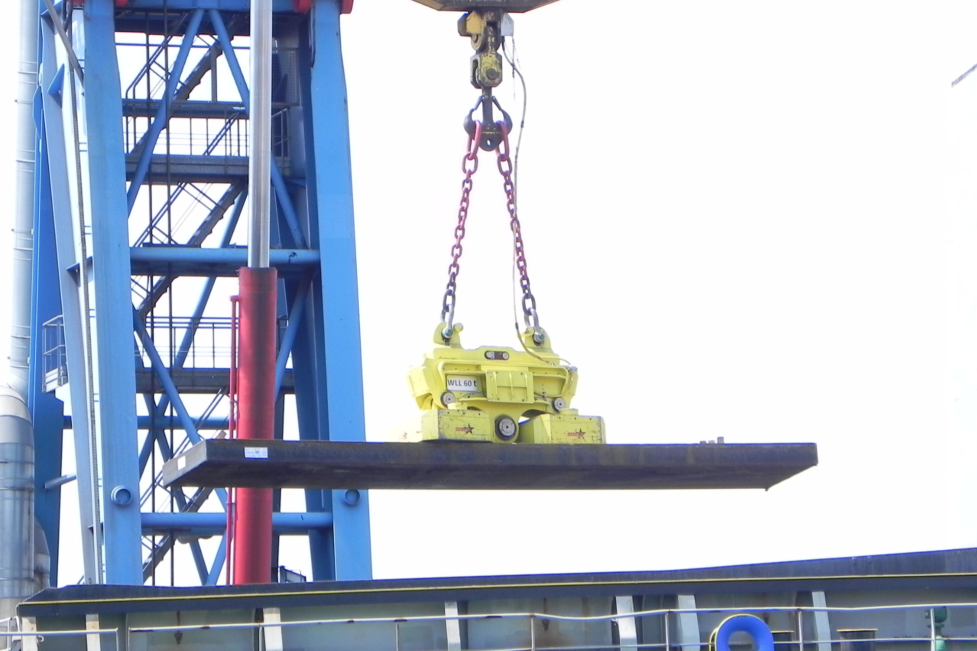 Applicabili su carroponti o semoventi. Installati su gru da porto, facilitano lo scarico delle bramme dalle stive delle navi.